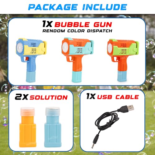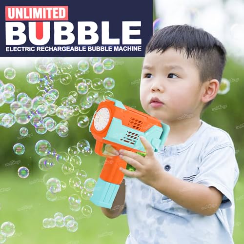 Innovative Bubble Fun: Unleash a whirlwind of joy with our rechargeable bubble gun toy, designed to astound with over 5000 bubbles per minute! Perfect for parties, outdoor play, or just a day full of fun.