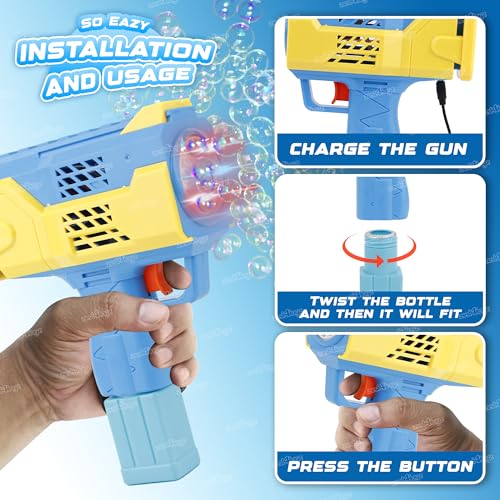 Easy to Use: Designed for little hands, this lightweight bubble gun features an easy-to-hold handle and a simple trigger operation. It’s hassle-free, with no need for manual blowing, making it accessible for kids to create endless bubbles.